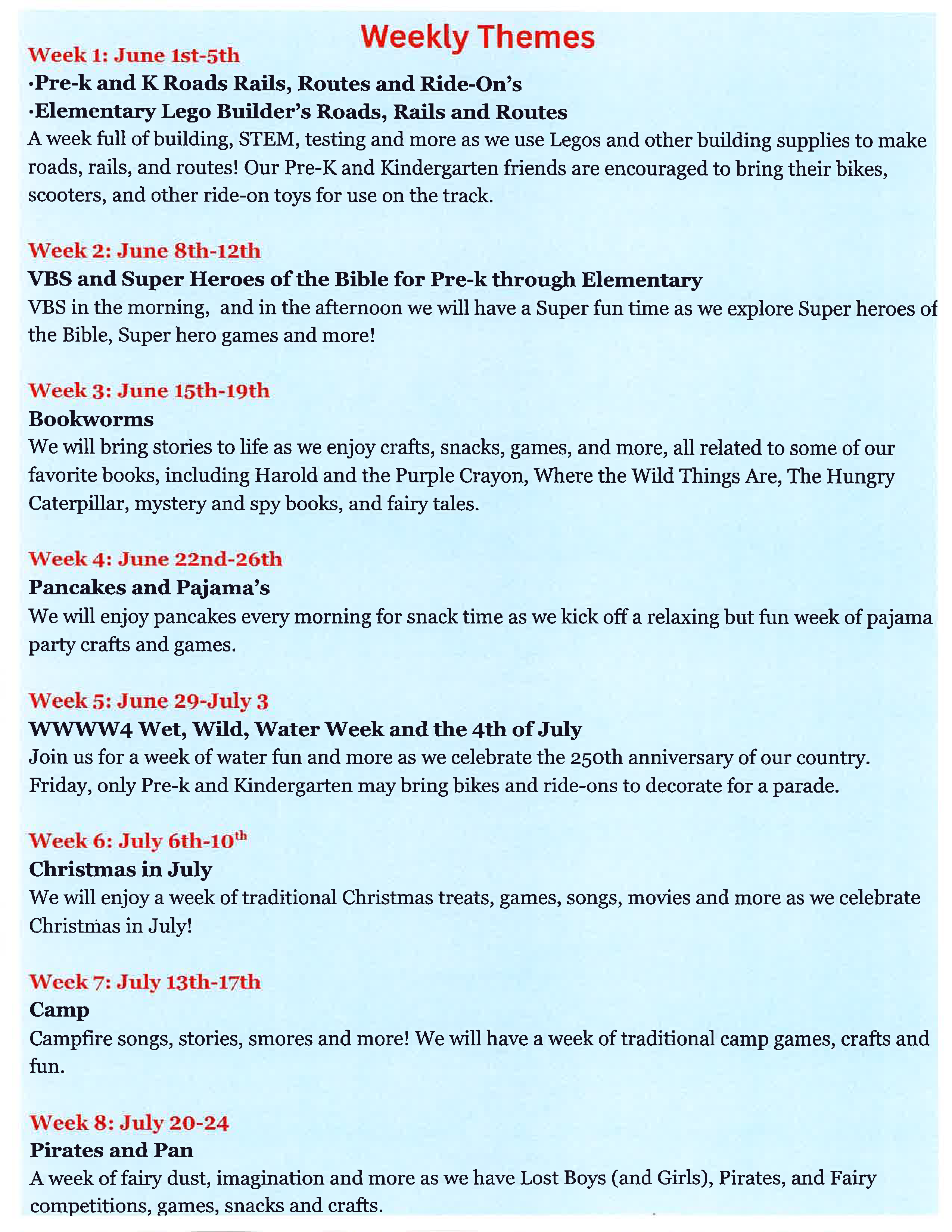 Summer Care Registration and Policies