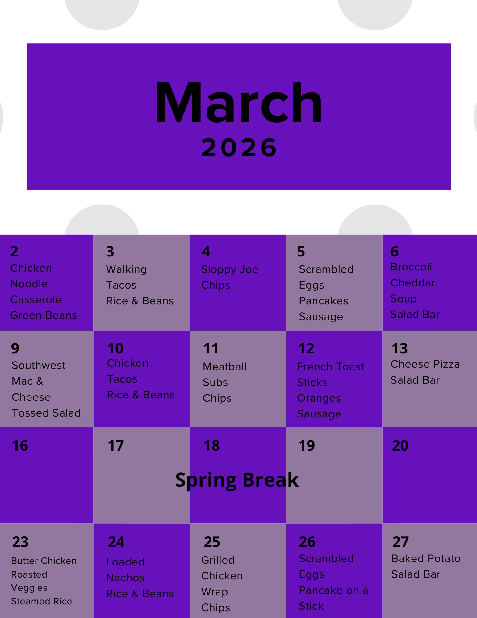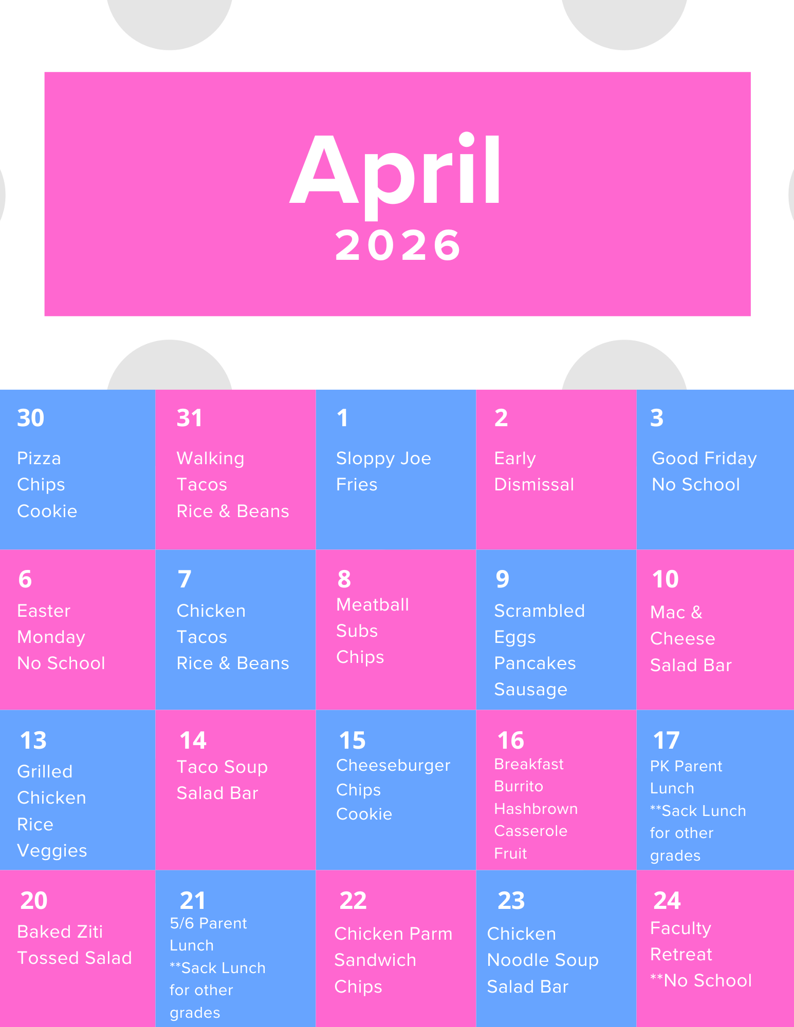 Cafeteria Lunch - Monday - Friday