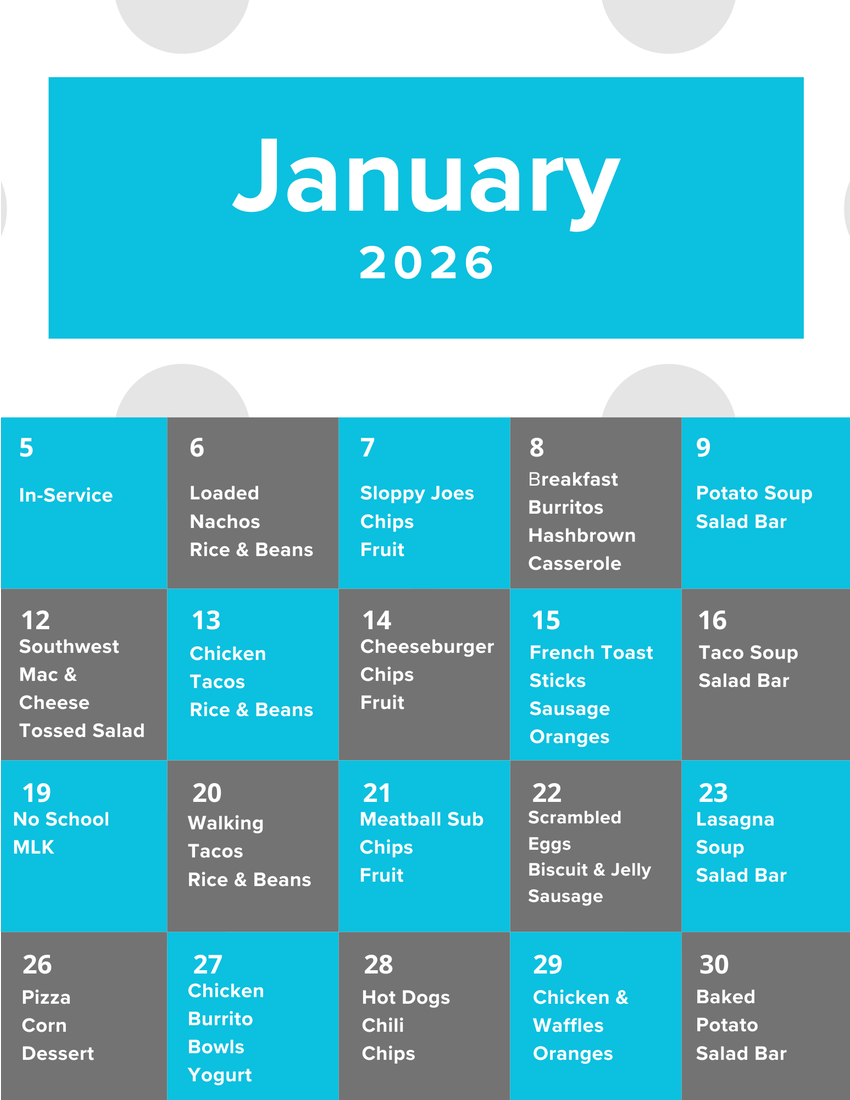 A hot lunch option is provided by the cafeteria, Monday - Friday of each week. In addition to lunch, students may purchase milk, juice, water or ice cream. The cost of lunch is based on grade and associated serving size.
